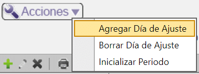 En el menú de acciones selecciona Agregar Día de Ajuste.