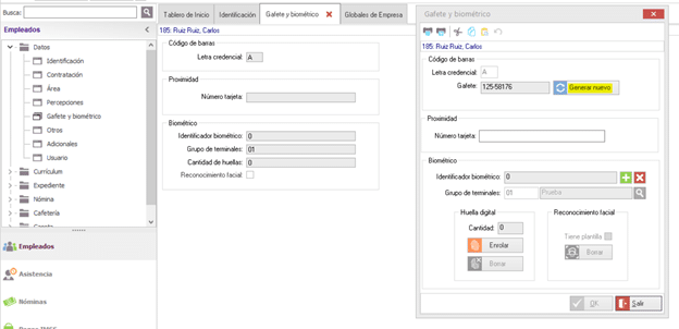 ¿Cómo asignar nuevo gafete al empleado para terminales B2?