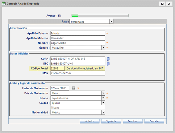 Derivado de los nuevos requerimientos para la generación de la factura electrónica, es necesario a partir de enero de 2022 incluir el campo de Código Postal del domicilio registrado ante SAT de los empleados.