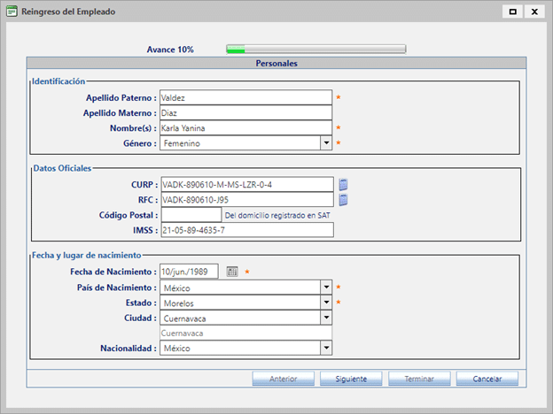 2. Alta del Empleado: Se encuentra en la sección de Datos Oficiales.