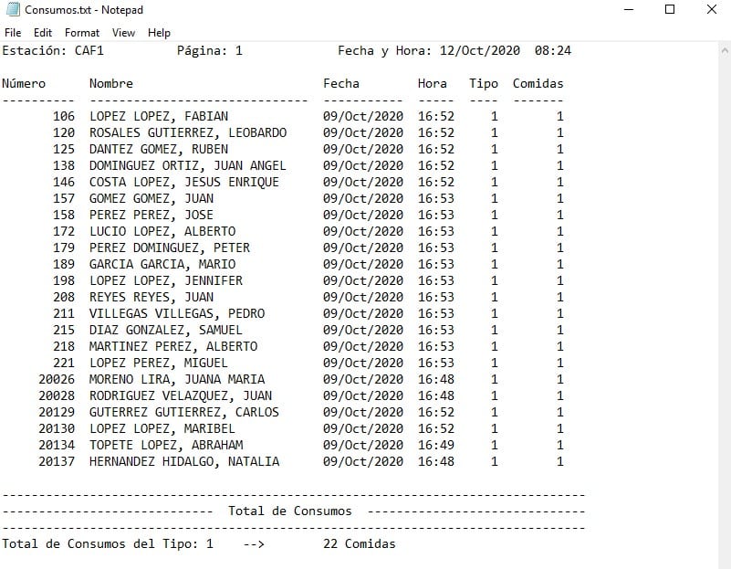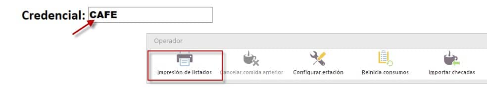 - Validar la generación del reporte de consumos de cafetería, ingresar al Operador de Cafetería y seleccionar la opción de Impresión de listados: