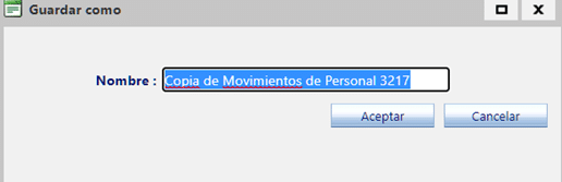 Al dar clic en el icono de Guardar Como, nos aparecerá una pantalla en donde debemos ingresar el nuevo nombre del reporte.