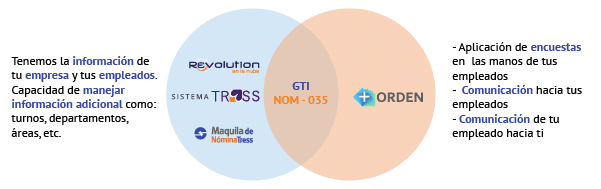 Nuestros clientes de Sistema TRESS, Revolution en la nube y Maquila de Nómina Tress cuentan con el respaldo de nuestro ecosistema GTI, de modo que cumplir con todos los aspectos de la NOM-035 es más sencillo que contratar a otros proveedores por separado, pues la alimentación de la base de datos para la definición de muestra y aplicación de encuestas serea prácticamente automática.Â