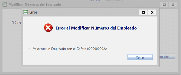 ¿Qué es el global Gafete Repetido? Es un dato que indica si queremos validar que no se repita el número de gafete del empleado, al realizar alguna de las siguientes acciones: