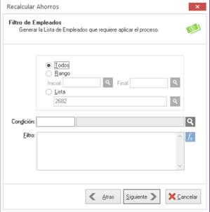 3. Seleccionamos el tipo de ahorro a recalcular y damos siguientes: