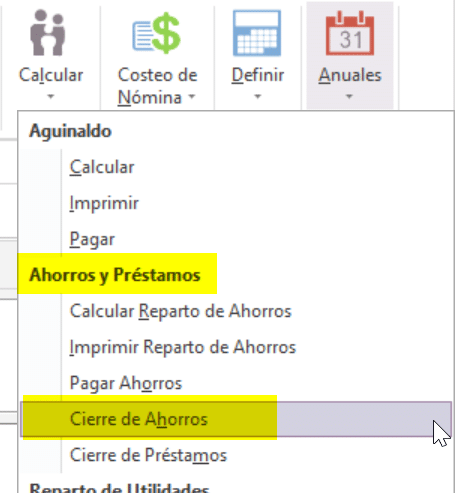 ¿Qué es el proceso anual de cierre de ahorros? Este proceso anual de nómina ‘reinicia’ los ahorros del tipo que se indique. Presenta tres opciones de cierre.