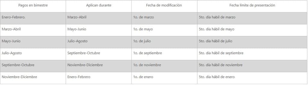 ¿Con qué frecuencia se realiza el Promedio de Percepciones Variables? ​​El IMSS indica que se debe calcular un promedio cada bimestre, oficialmente los bimestres a considerar son: