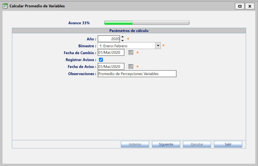 El proceso se encuentra siguiendo la siguiente ruta: Operación – IMSS/INFONAVIT – Promedio de Variables – Acciones