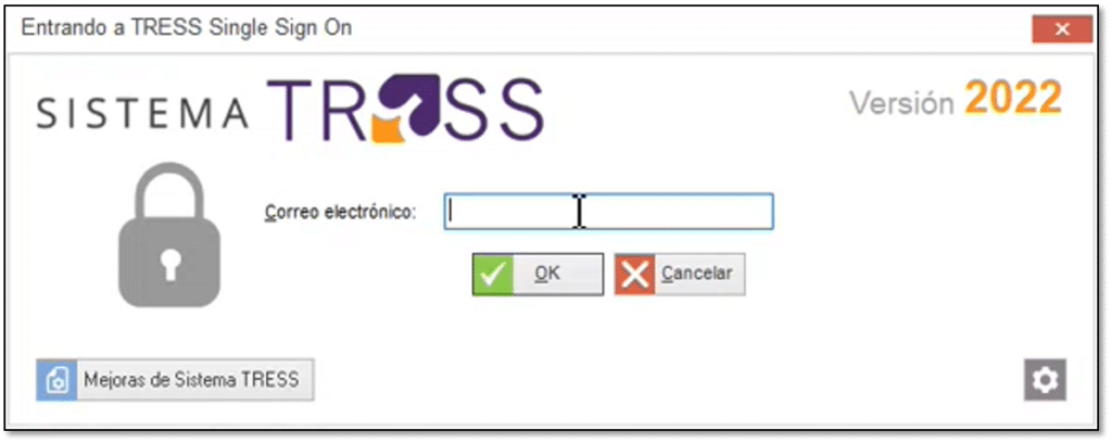 • Al ingresar a Sistema TRESS, la plataforma solicitará el correo electrónico del usuario como método de autenticación.