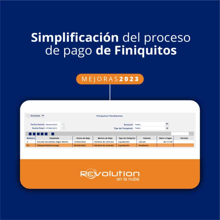 El proceso de cálculo y pago de finiquitos es una parte fundamental dentro de la gestión de recursos humanos en cualquier empresa. Sin embargo, en ocasiones, este proceso puede volverse complejo y propenso a errores, lo que puede generar inconvenientes tanto para la empresa como para los empleados. En este artÃculo, presentaremos los cambios implementados en Revolution en la nube con el objetivo de mejorar la eficiencia y precisión en el cálculo y pago de finiquitos.Â